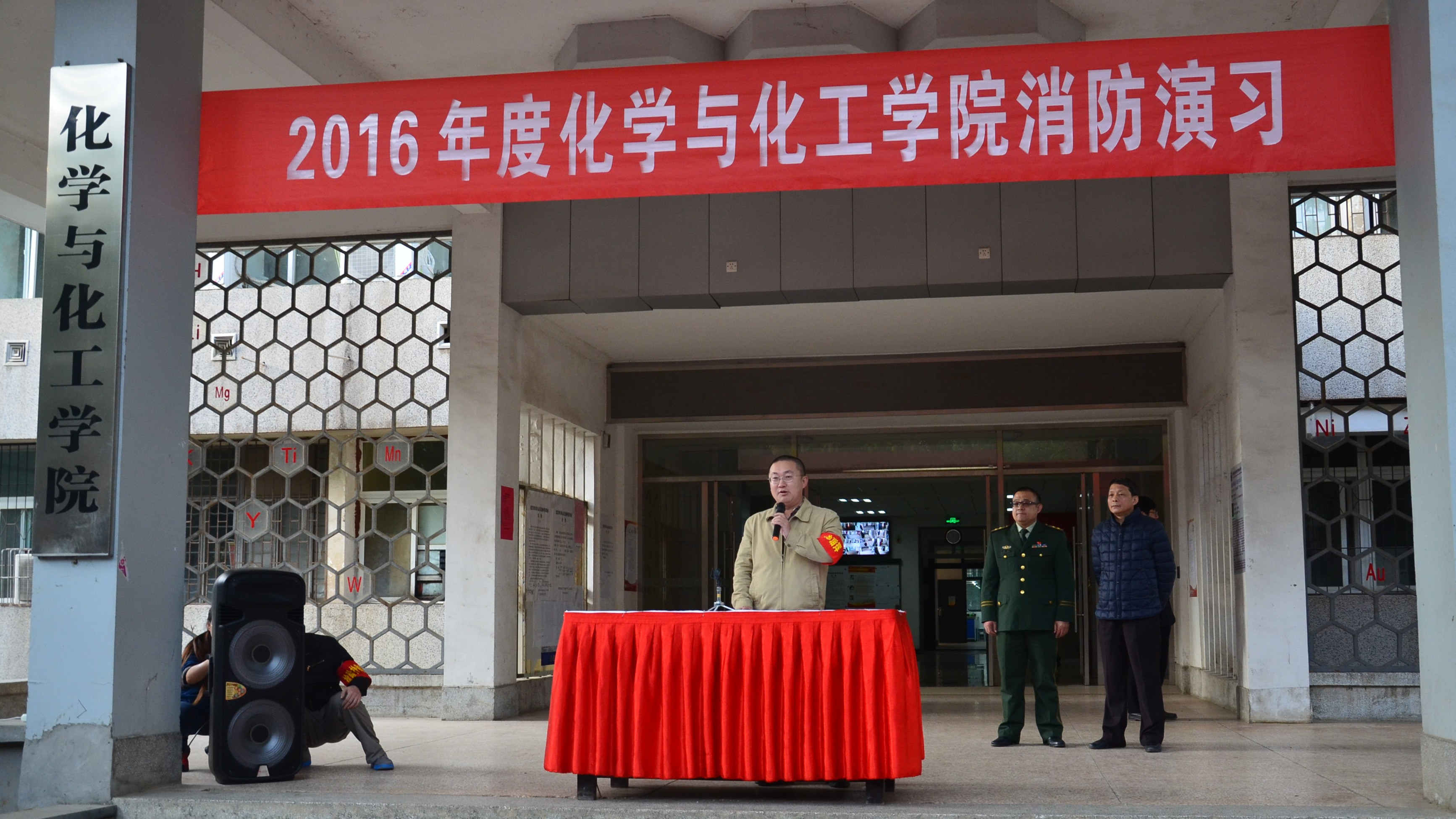 为了提高学院师生的火灾应急能力,培养师生的消防意识,201年11月11日下午4点,3044永利集团官网联合校消防安全管理办公室和武汉市消防局举办2016年度消防演习。本次到场的嘉宾有3044永利集团官网和武汉市消防局的领导。在化院师生以及消防官兵的共同参与下,本次活动顺利展开。